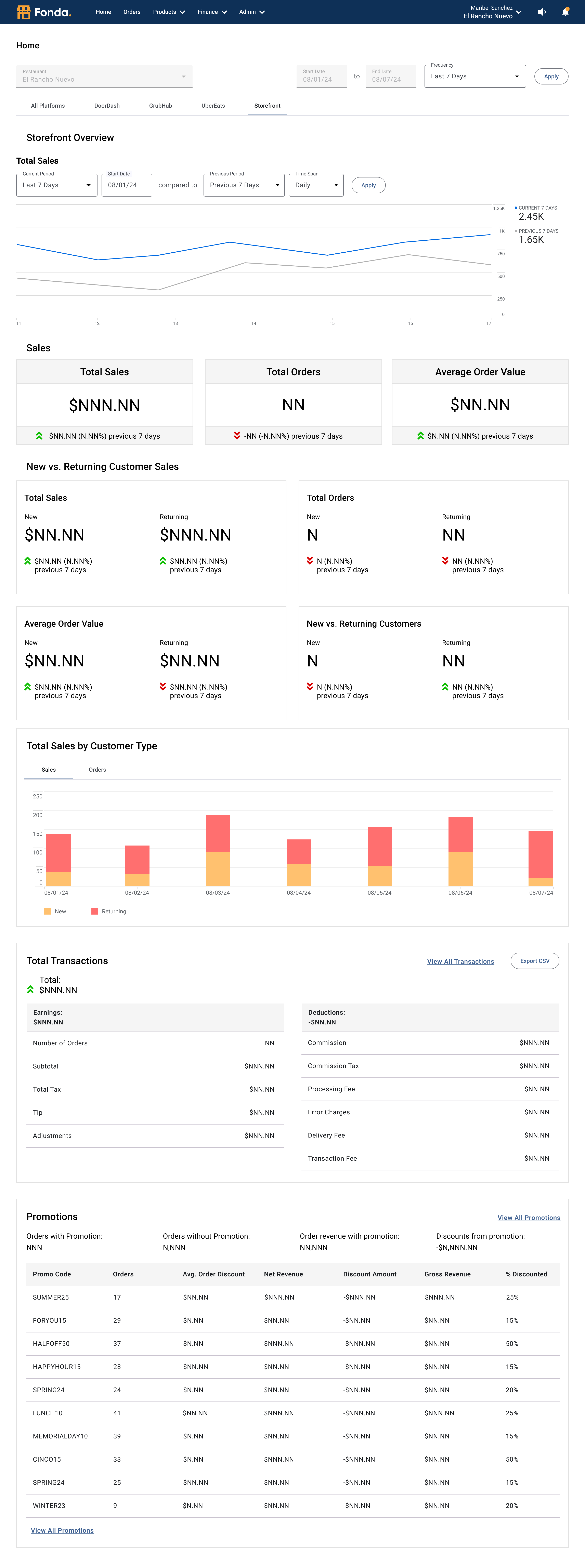 Fonda's platform was bleeding merchants at onboarding and overwhelming them with a cluttered dashboard. I restructured the IA, simplified a ten-step setup into a guided sequence, and shipped a data-dense interface restaurants could actually run their business on.